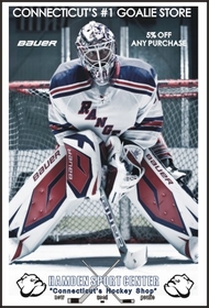 From the beginning goalie to the Division I starter, Hamden Sport has a fully stocked goalie department that includes all the major brands including Brians, Reebok, Bauer, and Vaughn. If it is new equipment or used equipment that you are in the market for, our highly qualified staff can match you to the proper equipment to optimize your game. With several goalies on staff, our custom sales have become a leader in the market. Stop in or give us a call today !!